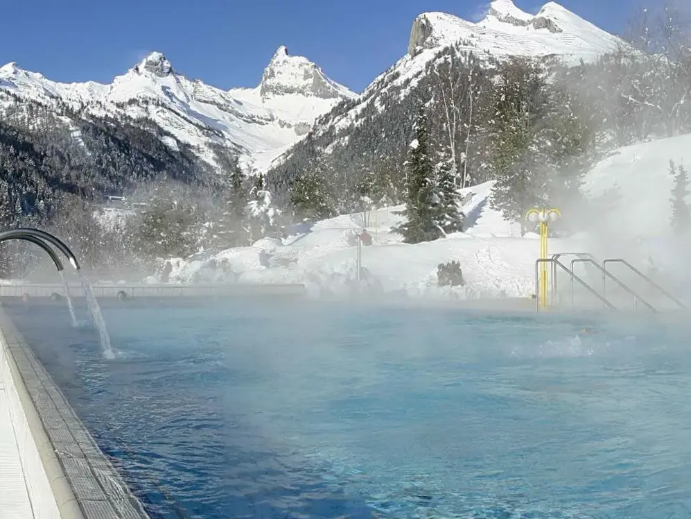 Refuge in Ovronnaz Thermal Bath Complex est un établissement situé à Chem. Mayen Blanc 28, 1911 Ovronnaz, Schweiz. Cet hébergement propose divers services incluant un restaurant, un bar, un spa, des chambres non fumantes, un centre de fitness, une piscine intérieure, un parking gratuit et une connexion WiFi gratuite. Les clients ont apprécié son ambiance calme et cosy, ainsi que l'accès direct aux bains thermaux sans avoir à quitter le bâtiment. Le refuge offre également un balcon spacieux offrant une vue sur le lever du soleil et sa proximité avec les pistes de ski et les sentiers de randonnée. Des attractions telles que La Promenade sont situées à moins d'un kilomètre, tandis que le lac Léman se trouve à environ cinq kilomètres. Les commentaires soulignent le confort exceptionnel et la possibilité de profiter pleinement de la nature.